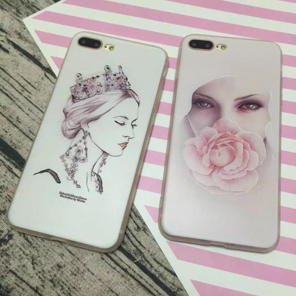 PC+TPU Silk Skin 3D Relief Painting Elegant Lady Face Pattern Cell Phone Case Back Cover For iPhone 7 6s Plus